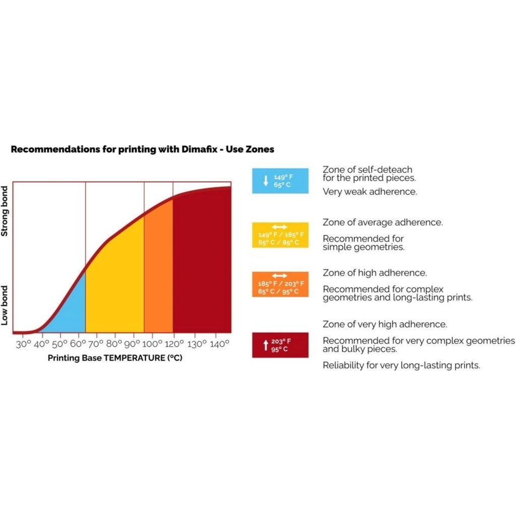 Different print bed temperatures lead to different degrees of adhesion: Below 60°C: Low adhesion - so that the objects can be detached from the plate 60 - 75 oC: Medium adhesion for simple geometries 75 - 95 oC: High adhesion for complex geometries and long prints Above 95 oC: Very high adhesion, for very complex geometries and very long prints