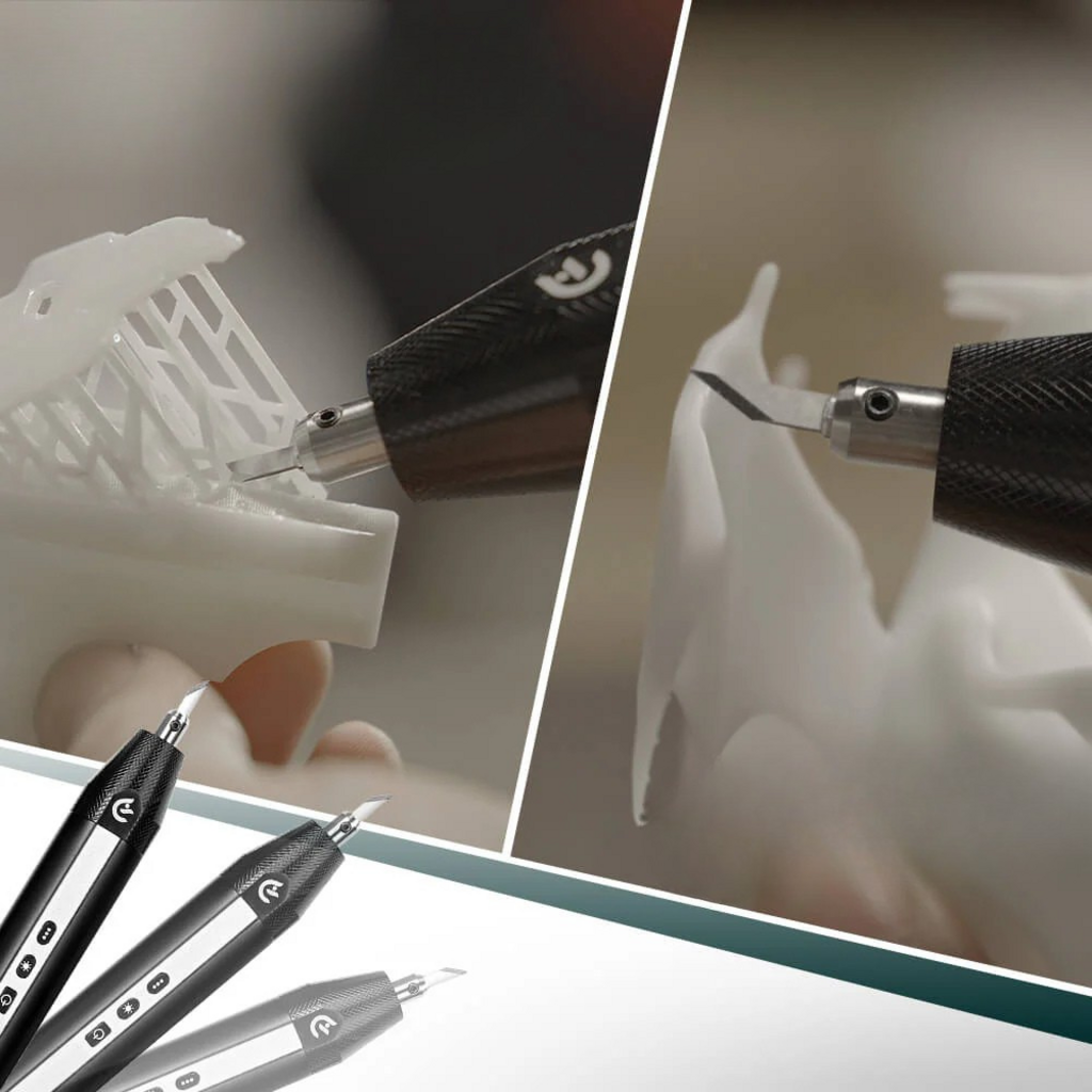 The pen-shaped body and nearly 30¡ã sharpened tip provide precise control over cutting depth and range ¨C ideal for delicate work such as paper models or small plastic parts. An integrated LED light illuminates your workspace, ensuring accuracy even in low-light conditions.
