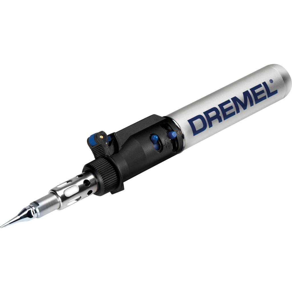 The Dremel Versatip is a cordless gas soldering iron that runs on liquid butane gas. The versatile soldering iron is used for precision and detailed work, including soldering, hot cutting and embossing, welding, pyrography and paint removal.