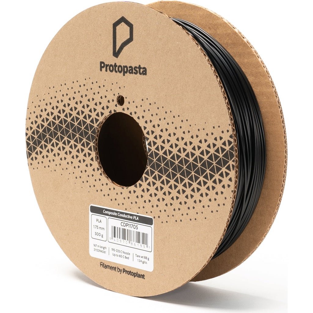 Protopasta's Electrically Conductive PLA is a special conductive PLA that can be used to electrify printed parts for simple circuits and touch-sensitive devices. The material has excellent layer adhesion, increased breaking strength and higher melt flow.