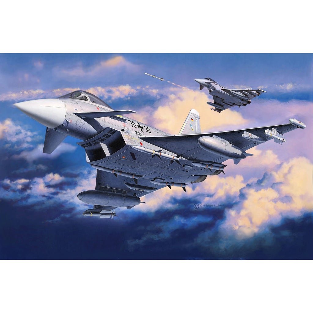 The Eurofighter is currently the most outstanding high-performance multi-purpose combat aircraft of the latest generation. With a maximum speed of Mach 2.0+, the Eurofighter dominates both aerial combat in long-range and close combat and also has ground attack capability. It is primarily designed as a fighter to protect airspace and is equipped with a combination of weapons for this purpose, including powerful short-range and medium-range air-to-air missiles.