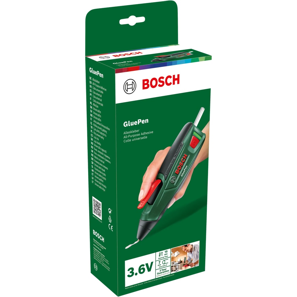 Unleash your creativity with the cordless GluePen battery-powered hot glue gun from Bosch ! Ready for use in just 15 minutes, it is your faithful companion for spontaneous craft projects and repairs. The ergonomic pen shape with soft grip ensures effortless handling, while the versatile application on paper, textiles, wood, metal, plastic and stone leaves nothing to be desired.