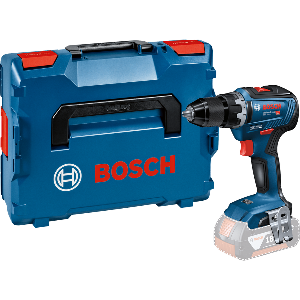 | 1 x GSR 18V-55 cordless drill/driver 1 x L-BOXX 1 x L-BOXX insert for device | 1 x GSR 18V-55 cordless drill/driver 2 x battery GBA 18V 4.0 Ah 1 x charger GAL 18V-20 1 x 82-piece accessory set 1 x L-Case Pick & Click |