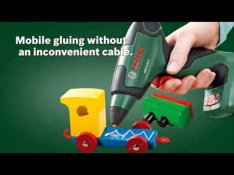 The compact PKP hot glue gun from Bosch offers cordless convenience for decoration work, small repairs and arts and crafts projects. It can be used with a wide range of materials such as paper, textiles, wood, metal, plastic or stone.
