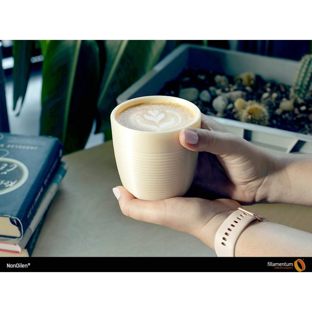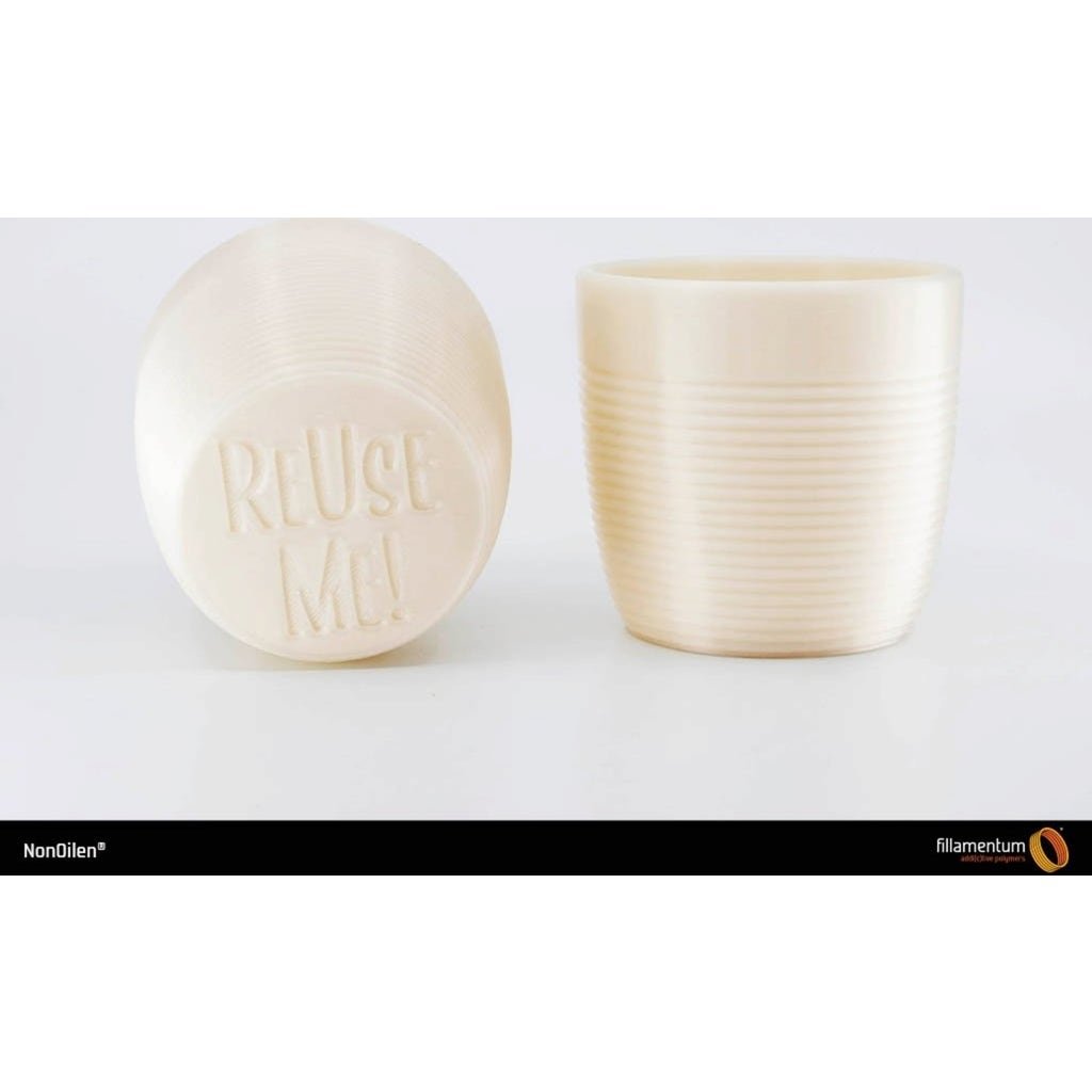 Printing NonOlien is as easy as standard PLA, but it composts faster. The filament is characterised by its strength and hardness, is very durable and temperature-resistant up to 110°C.