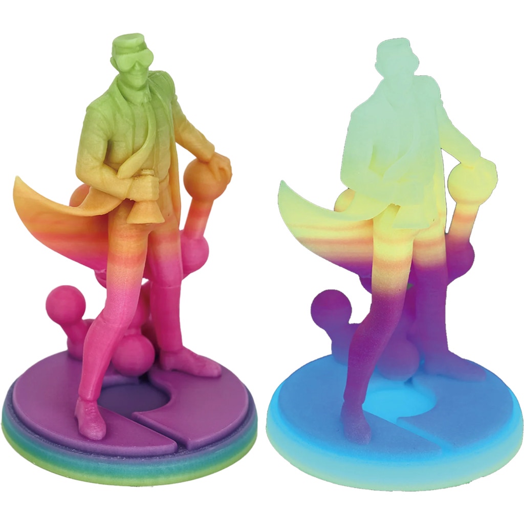 Polymaker's Panchroma? PLA Gradient Luminous not only brings out a unique colour mix in daylight, but also shines with similar colours in the dark. The special composition of Gradient Luminous PLA creates a fascinating multi-coloured glow effect that puts your creations in the spotlight and gives them a distinctive look.
