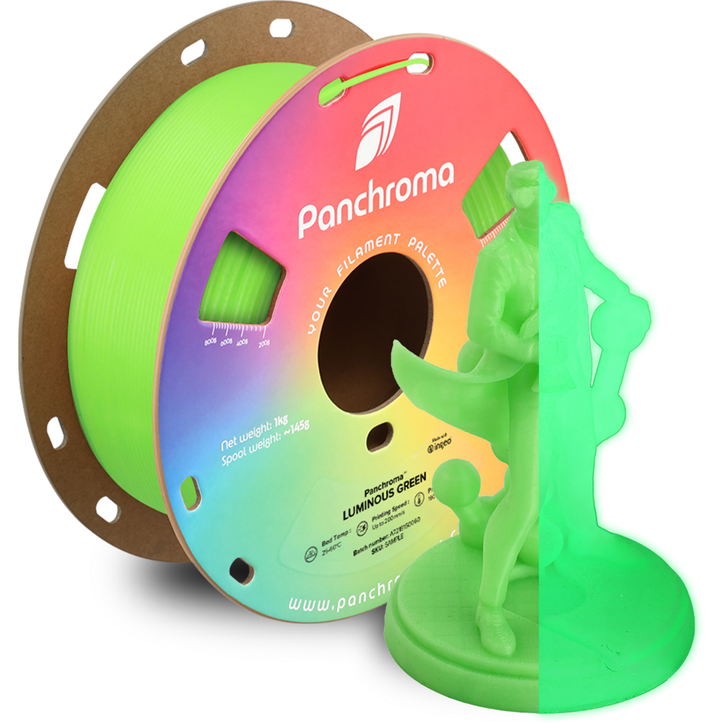 Polymaker's Panchroma? Luminous PLA not only brings out a unique colour in daylight, but also glows in a similar shade in the dark. The special composition of Luminous PLA creates a fascinating glow effect that puts your creations in the spotlight and gives them a distinctive look.