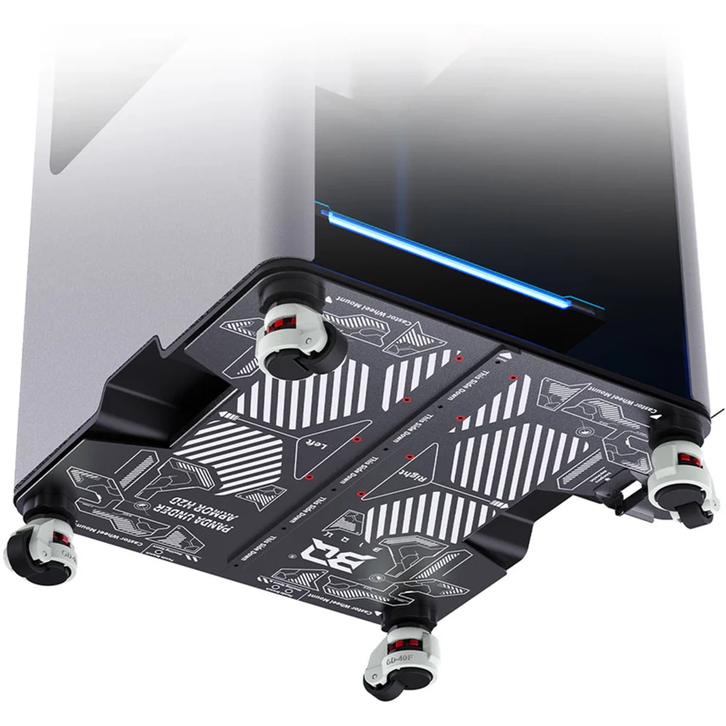 Thanks to its precision design with a satin finish, the cover blends seamlessly with the printer¡¯s look ¨C appearing as part of the machine rather than an extra accessory. For maximum flexibility, Panda Under Armor comes with castor wheels that make your printer mobile in seconds. At the same time, pre-set mounting points allow for quick integration with the Panda Branch ¨C with no measuring or extra adjustments required.
