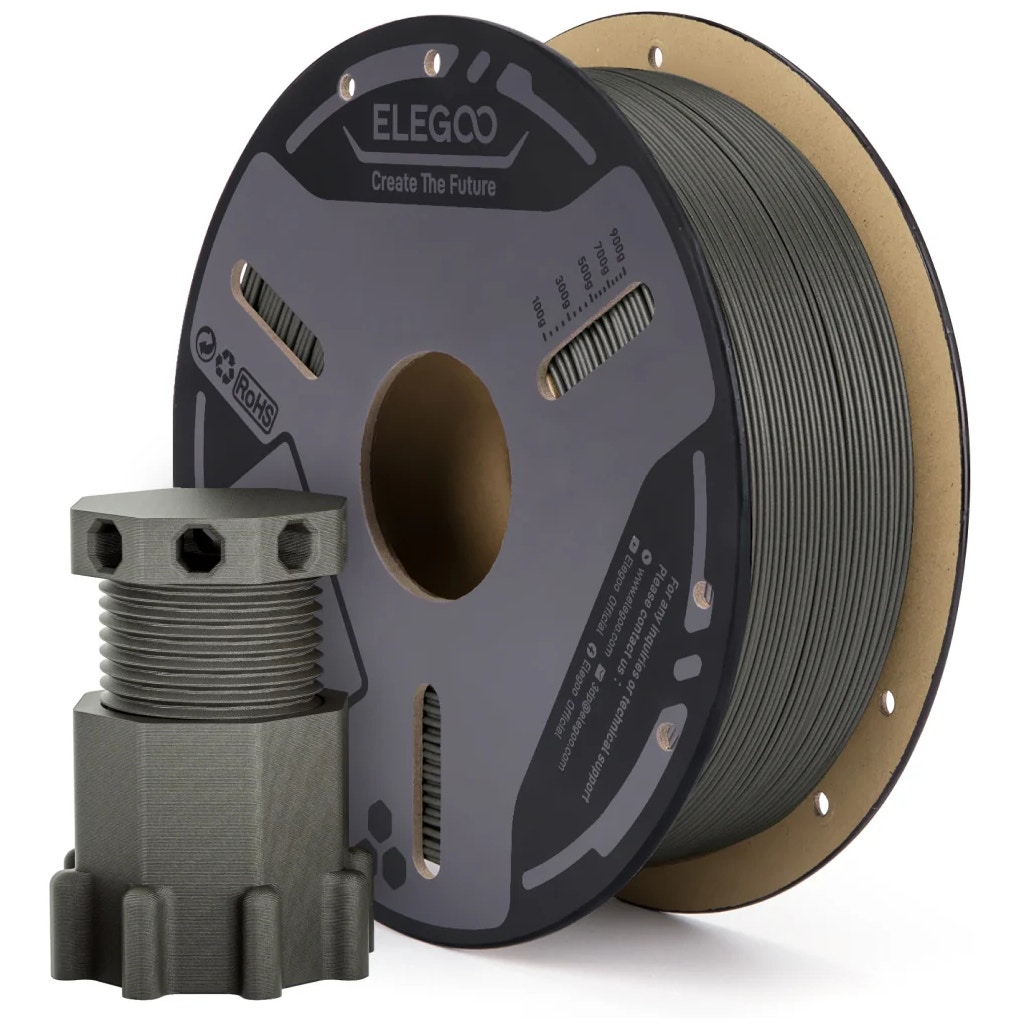 Elegoo PETG-CF combines the versatility of PETG with the strength of carbon fibres to deliver exceptionally durable, precise and long-lasting prints. Reinforced with carbon fibre, this material offers outstanding strength and rigidity, effectively protecting your printed parts from bending, cracking or deformation under load.