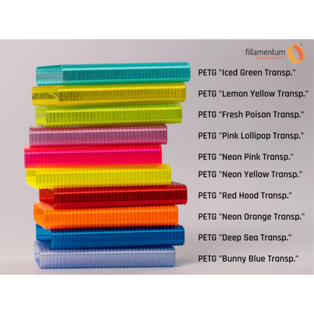 PETG is a widely used material in the 3D printing world thanks to its excellent texture and ease of processing. Fillamentum's durable PETG convinces with beautiful visual features such as gloss and transparency on the one hand, and with fantastic mechanical properties on the other. In addition to the high rigidity and hardness, the material is also characterised by good flexural strength, low deformation and excellent layer adhesion.