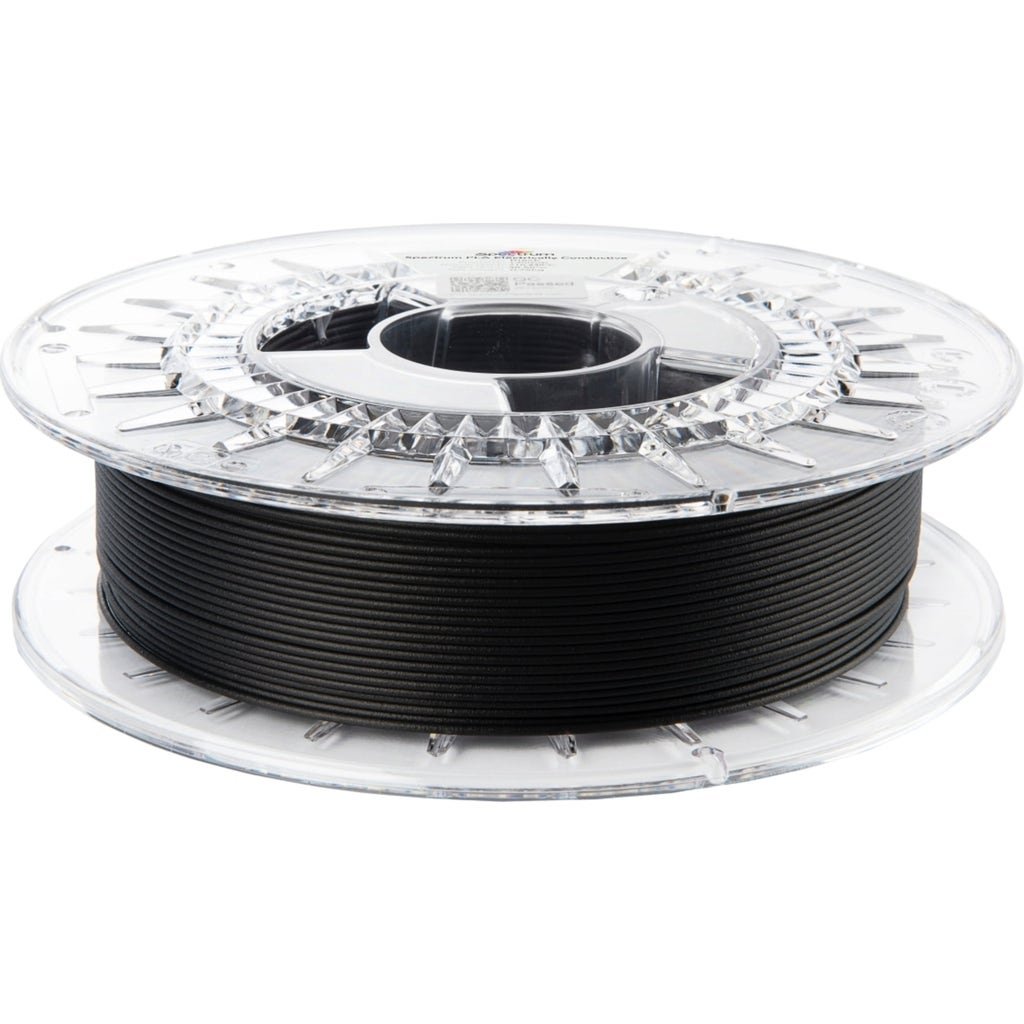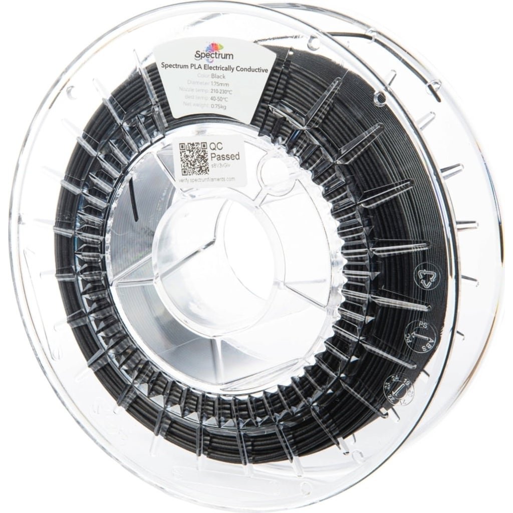Spectrum PLA Electrically Conductive is a functional speciality filament based on PLA, specifically designed for printing parts that require electrical conductivity. Conductivity is achieved through the addition of carbon nanotubes (CNTs), which significantly reduce surface resistance. At the same time, the material retains the typical advantages of PLA: easy to print, low tendency to warp, and can be printed without a heated chamber.