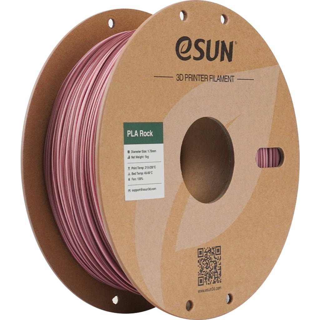eSUN PLA Rock brings the rugged, natural look of real rock straight to your print bed ¨C without the dust and mess! Thanks to a special matt formula and dual-tone gradient, it delivers a surface that resembles weathered rock, complete with an authentic layered look and dynamic colour variation.