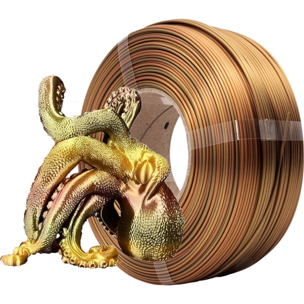 PLA Silk by AzureFilm is an easy-to-print silk filament that reveals extraordinary colour effects with its velvety appearance and glossy finish. Thanks to the characteristic properties of PLA and a beautiful appearance, this material is suitable for printing decorative elements such as vases, figurines, accessories and household appliances.