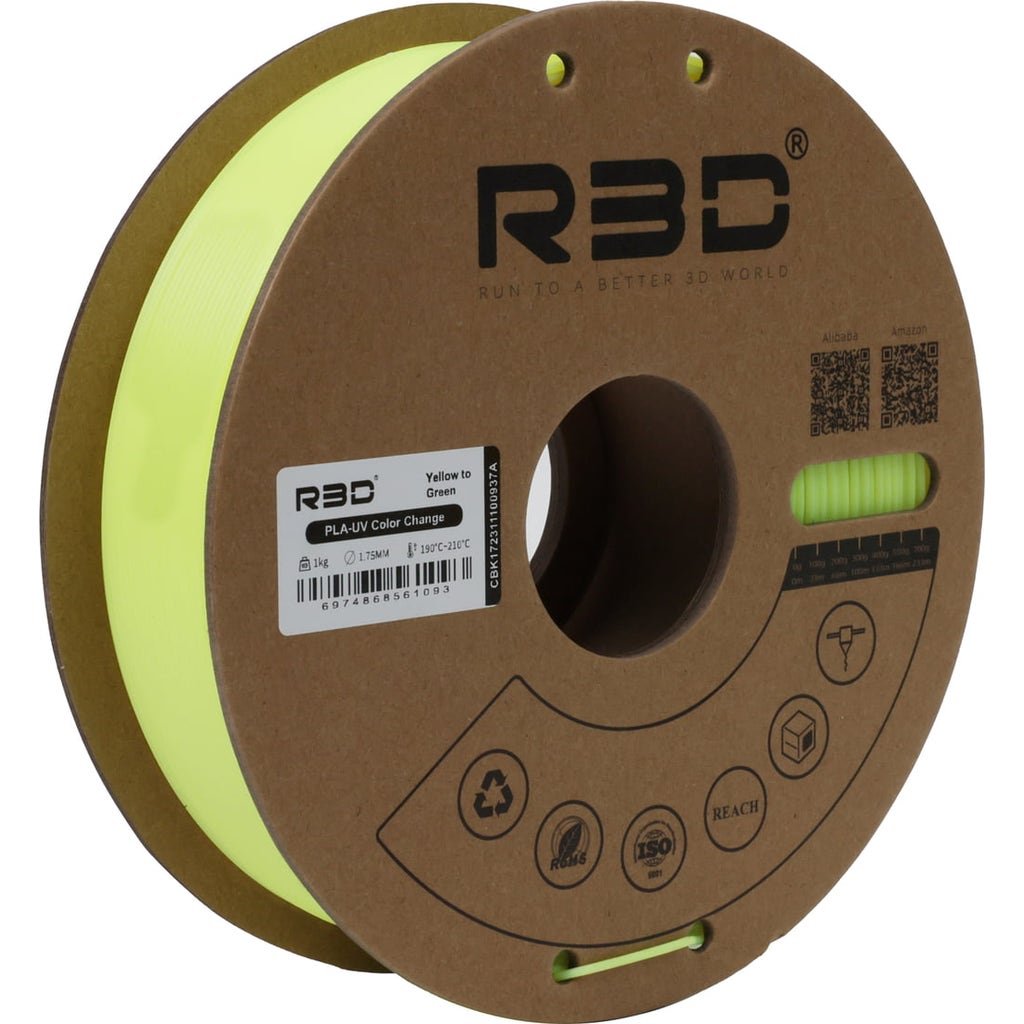 The PLA UV Colour Change Filament from R3D is not a classic filament: While it has the usual PLA properties such as high toughness, strength and a wide application range, it also allows you to conjure up unique 3D models in colour-changing tones!
