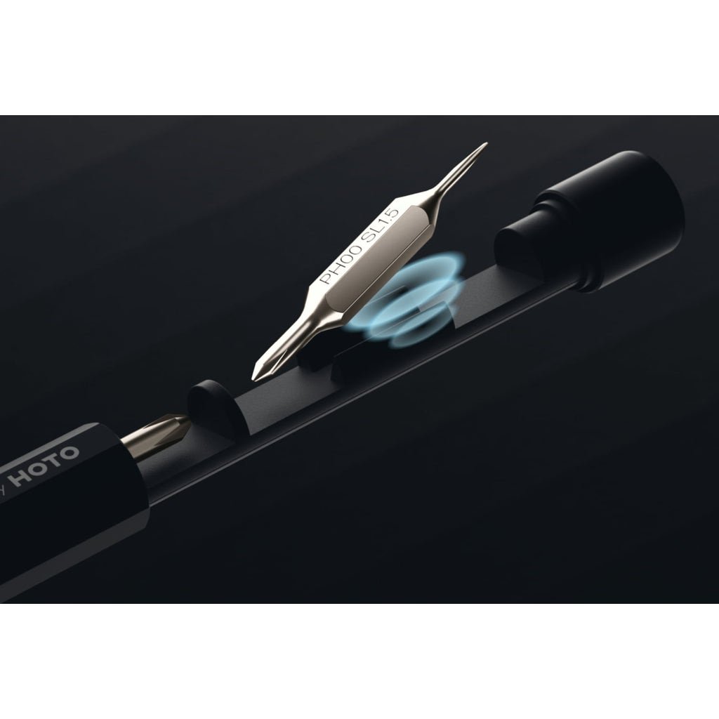 Made from high-quality aluminium, the HOTO Tools Pocket Precision Screwdriver SE combines style with functionality. Thanks to a hardness of 60HRC and rust-resistant surface, it can withstand any challenge - and it weighs just 18 g and has a 10 mm handle diameter for comfortable working.
