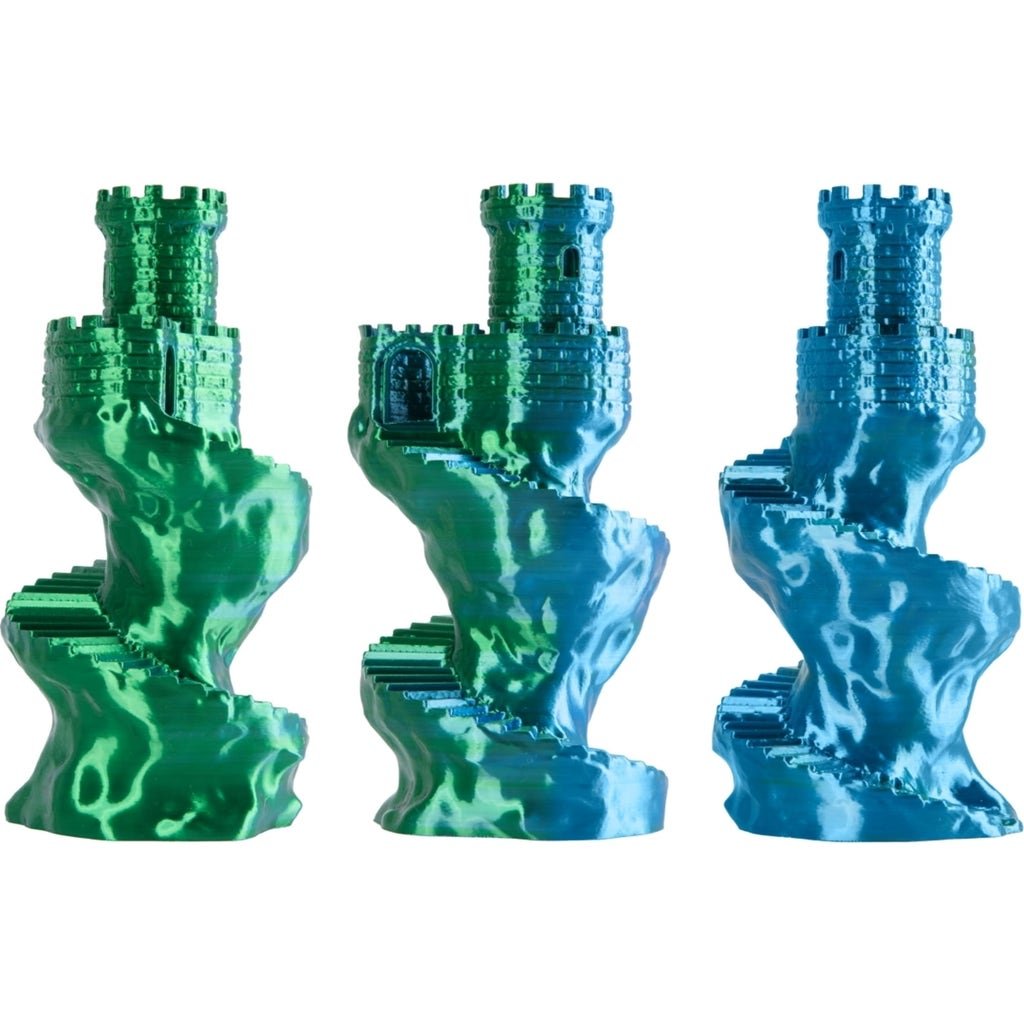 Add a magical touch to your 3D printing projects with Spectrum PLA Magic Silk, a unique filament that transforms each print into a shimmering work of art. Thanks to the innovative coextrusion technology, the material combines two colours in one filament and results in impressive colour gradients that unfold their full dynamics depending on the lighting and viewing angle. You get models that are not only glossy but also display a fascinating depth and unmistakable character. Magic Silk with its silky, smooth surface, adds an elegant finish to any printed object. The material reveals its true character in detailed models where the colour changes and light reflections are shown to their best advantage.