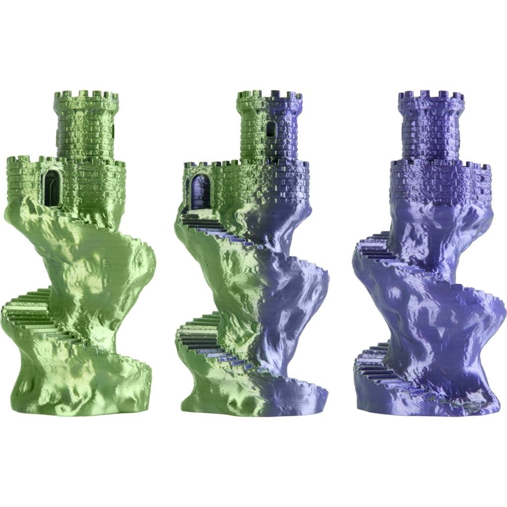 Add a magical touch to your 3D printing projects with Spectrum PLA Magic Silk, a unique filament that transforms each print into a shimmering work of art. Thanks to the innovative coextrusion technology, the material combines two colours in one filament and results in impressive colour gradients that unfold their full dynamics depending on the lighting and viewing angle. You get models that are not only glossy but also display a fascinating depth and unmistakable character. Magic Silk with its silky, smooth surface, adds an elegant finish to any printed object. The material reveals its true character in detailed models where the colour changes and light reflections are shown to their best advantage.