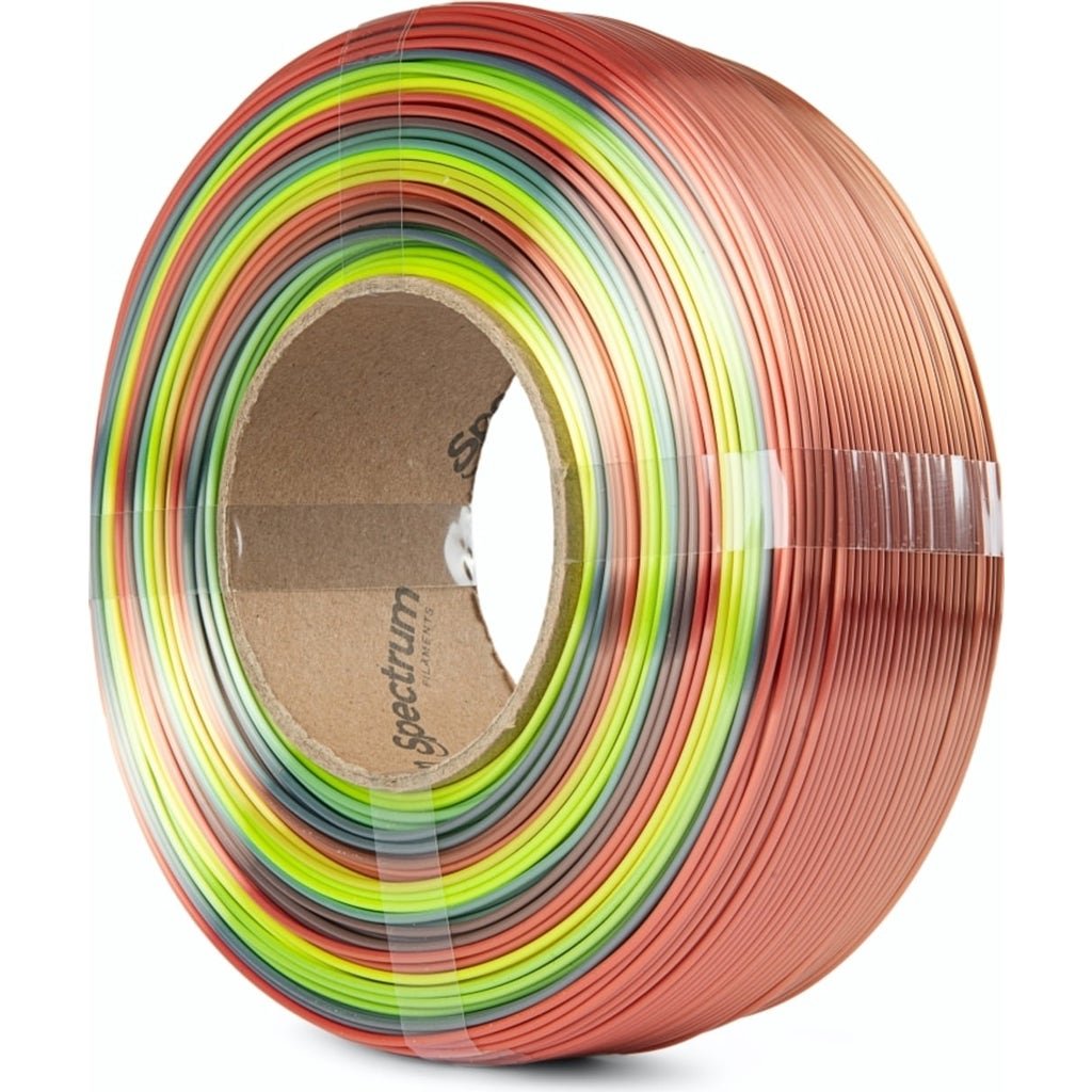 The ReFill PLA Silk Rainbow from Spectrum is a spool-less filament wound on a cardboard core that is compatible with the reusable spools by Bambu Lab and the Spectrum spools* you can print yourself - no additional adapters are required. This environment-friendly option produces almost no waste and is available at an affordable price!