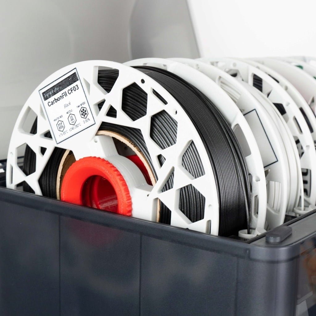 This ReFill System has been specially developed for using FormFutura refill filament spools in Bambu Lab AMS. The innovative solution is designed to make filament consumption more sustainable and resource-efficient whilst reducing the environmental impact thanks to reusable components. In contrast to conventional filament spools, which have to be discarded after they are empty, the ReFill System consists of: