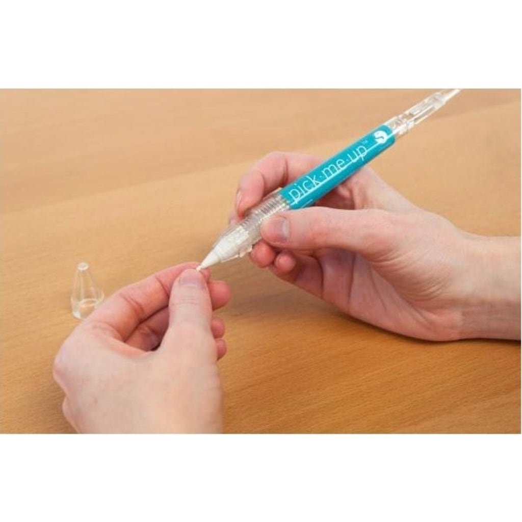 The Sticky Pen Pick-Me-Up by Silhouette is a practical tool for precisely picking up and placing small objects such as pieces of paper and rhinestones. The tip of the pen is made of a sticky material and can be rotated after wear to release more sticky material.