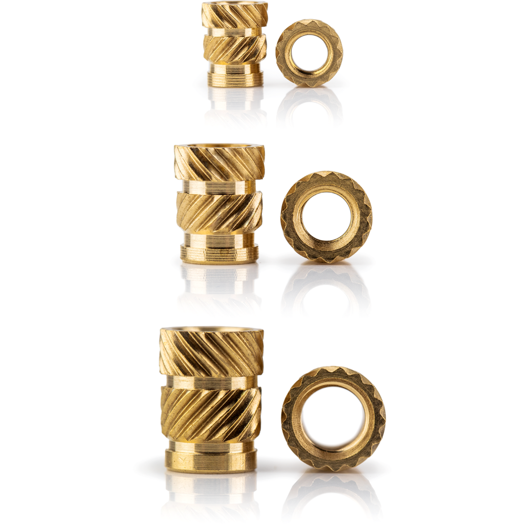 The CNC-milled threaded inserts made of high-quality brass alloy are practical accessories that can be used to convert 3D-printed plastic parts (made of PLA, PETG, ABS, etc.) into practical and versatile components.