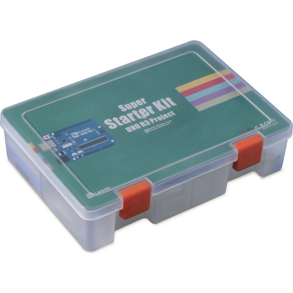 The UNO R3 Super Starter Kit from Elegoo offers the ideal introduction to the world of programming and electronics! With its 24 detailed tutorial lessons, the kit is particularly suitable for children aged 10 and over who are interested in the basics of the Arduino software IDE and want to learn how sensors controlled with a UNO board work.