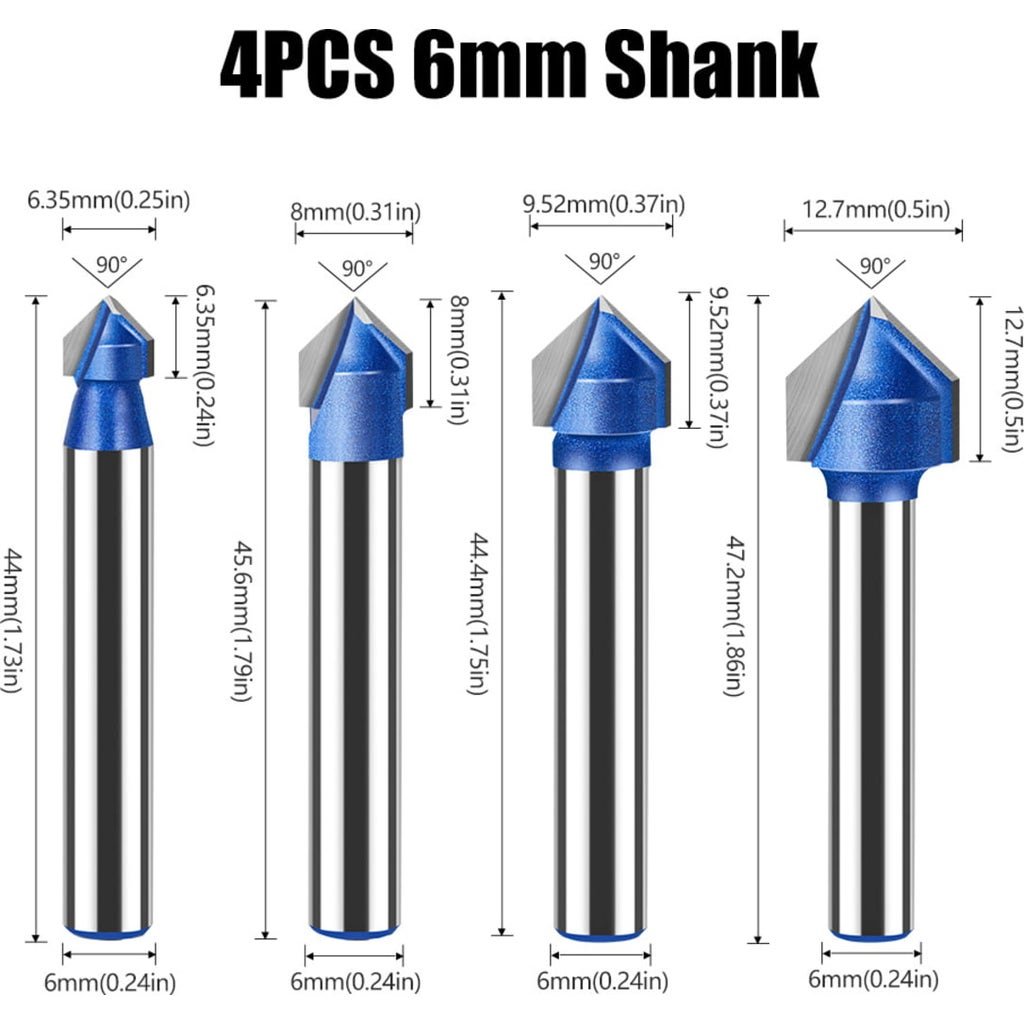 This is a set of 4 90¡ã V-groove cutters from Two Trees . The 6mm cutters feature a durable carbide blade with a non-stick Teflon coating and an alloy handle with a half-round milling.