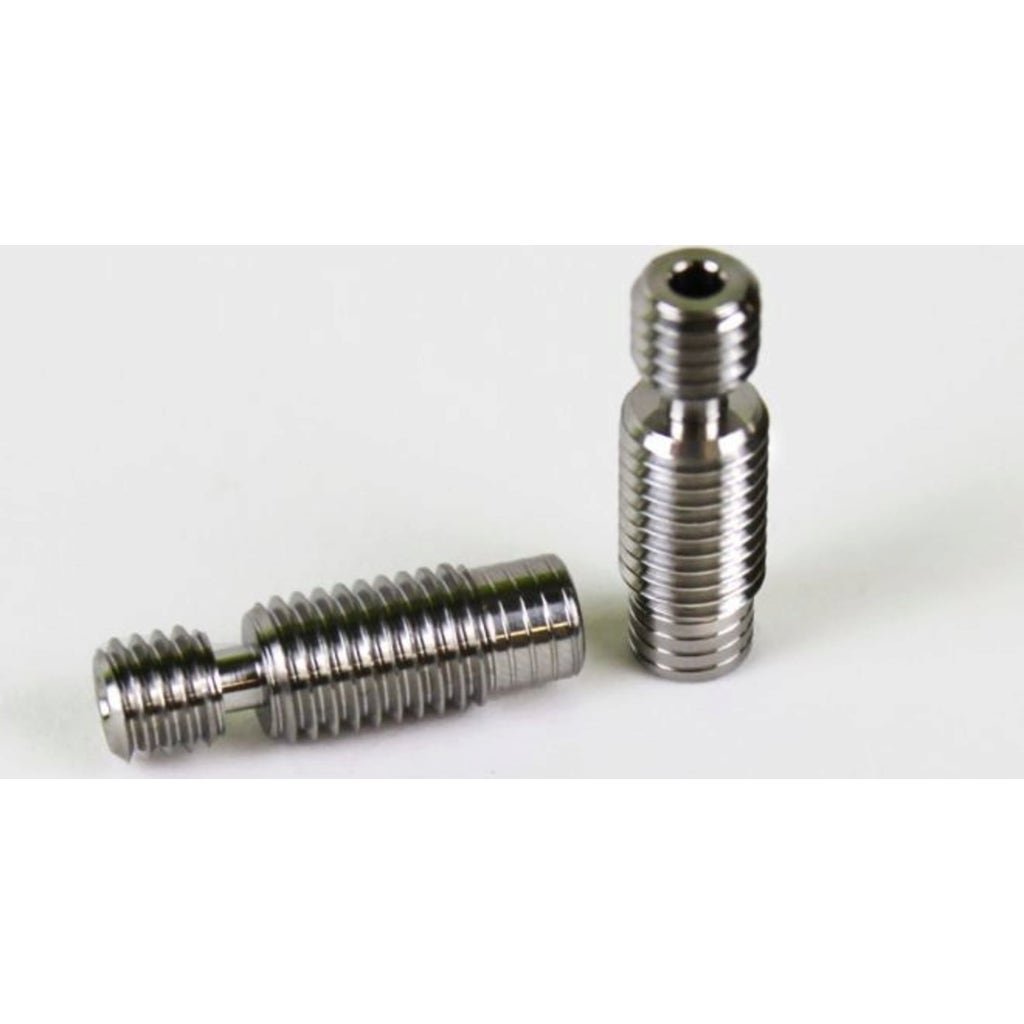 These special heat breaks are also made of grade 5 titanium. This material is exceptionally strong and has a lower thermal conductivity than stainless steel, so that you can keep the cool side of your hot end even cooler. This creates a more defined melting zone within the hot side, creating better extrusion control. The increased strength of these heat breaks makes them less likely to break, either when installing or in the event of accidental collisions with a printed part or print bed.