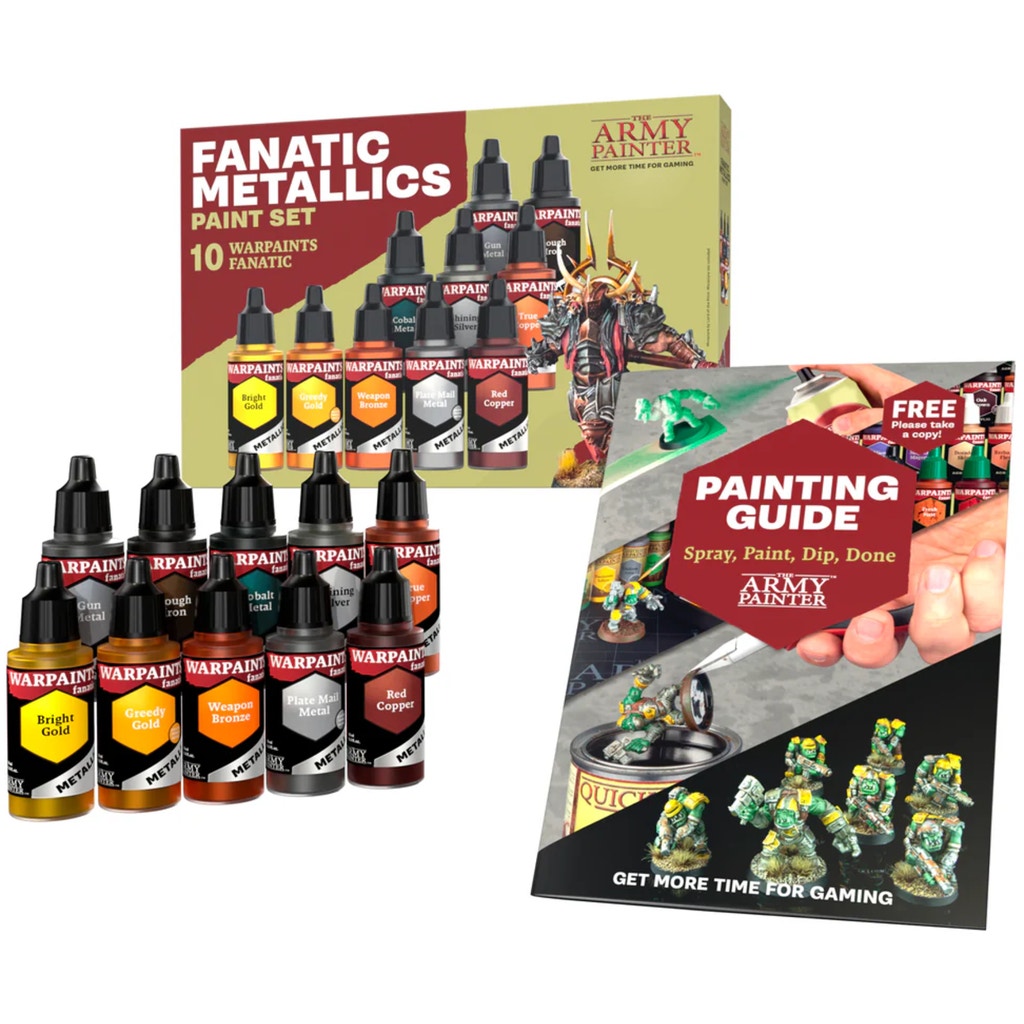 Immerse yourself in the shimmering world of the Warpaints Fanatic: Metallics set from The Army Painter! This set brings metallic tones to your army and gives your miniatures a radiant finish. Whether shiny gold, cool silver or mysterious metallic accents - these colours set new standards in terms of detail and shine.